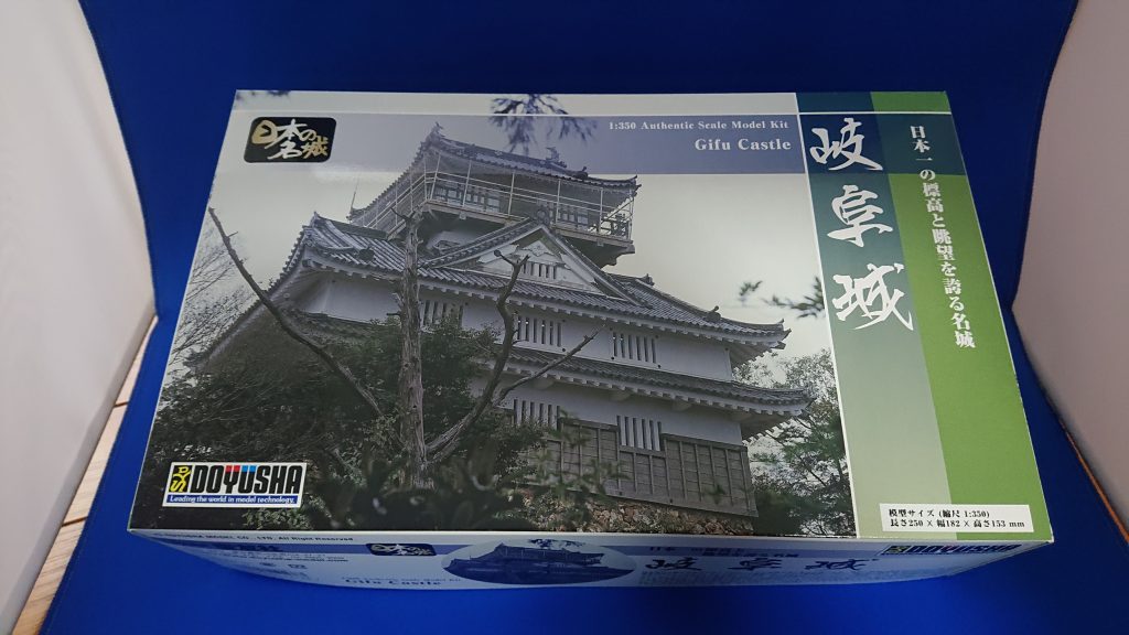 近所の模型店で童友社の1/350岐阜城を購入した。小学生のころに購入した同社の姫路城のプラモデルに同封されていた小冊子の中に、この岐阜城の写真があったのを覚えている。小ぶりな天守閣ながら、険しい山の上に建っている姿が印象的で昔のことながらよく覚えている。