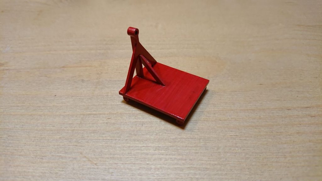 筆塗りで、少し色ムラが出てしまっているけど、下地塗装としてはパッと見良さそうに見える。左側のエンジンスタンドに本番の赤塗装を2回塗りしたものがこれ。