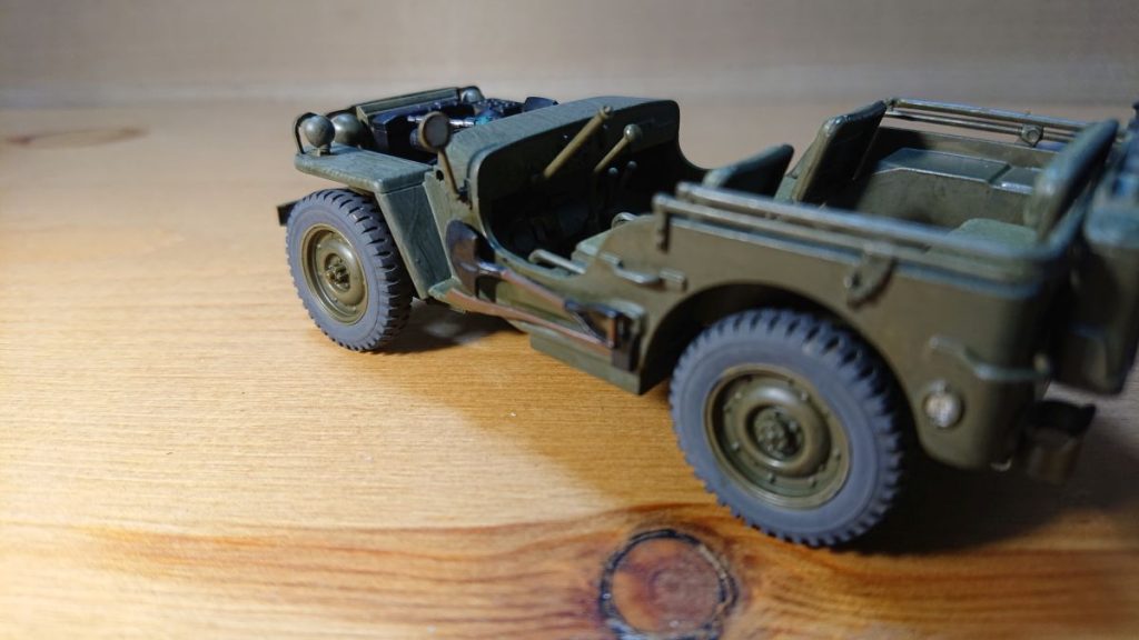まずは、グレーをミリタリーモデルのタイヤの下塗りとして使うってあたりだな。以前ここの記事でもやったことだが、このグレーは中々いい色でそのままタイヤの色として使ってもいいくらいだ。私はもう少し黒っぽい方が好みなので、グレーをベースにタイヤブラックを薄めて塗るけどな。