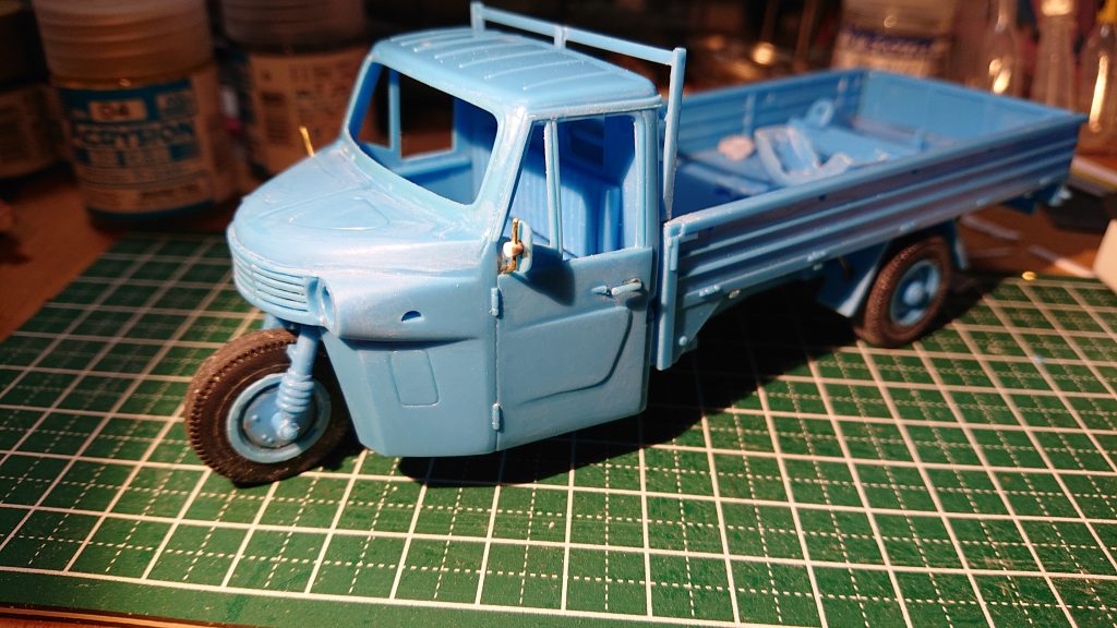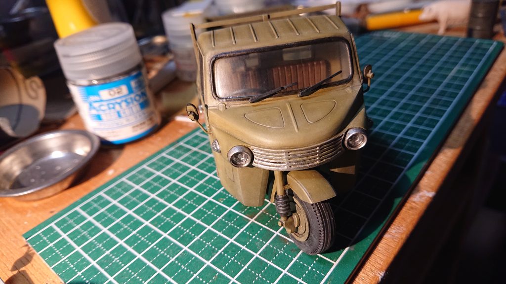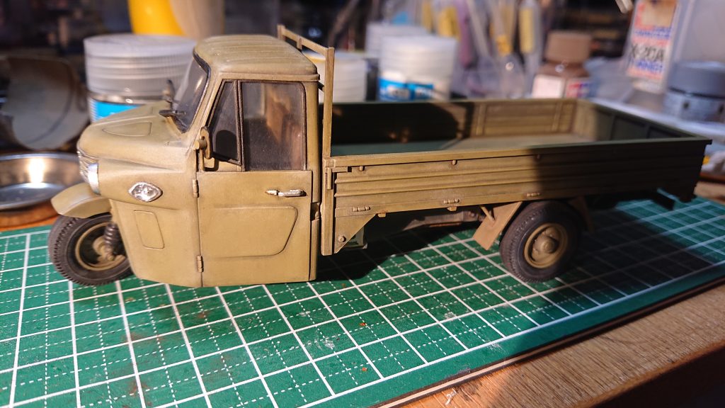 今回は、実車にそこまで思い入れがあるわけでもないので、実物がどうだったかについてはあまり考えずキットを作ることそのものを楽しむことにした。そもそも私には三輪トラックを見た記憶があまりなく、小学生になって以降は皆無である。昭和20年代から30年代の風景にノスタルジックを感じることもないのだ。