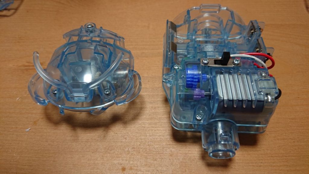 こうして見ると、メカっぽくてカッコいい。中身が見えるように透明な樹脂をボディに使うというのもオシャレ。そして、各ユニットを組み立てると胴体完成、ようやく形になった。