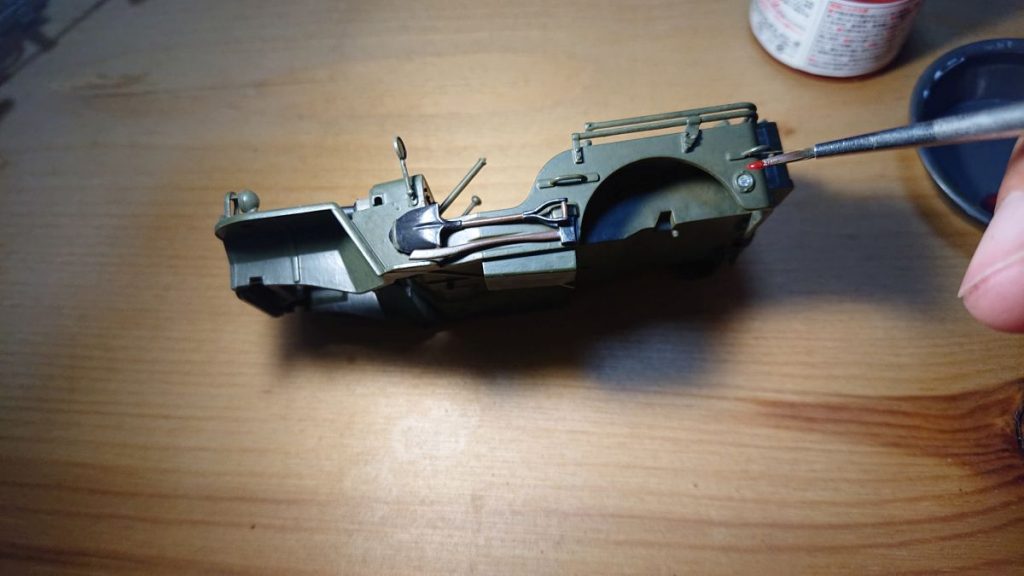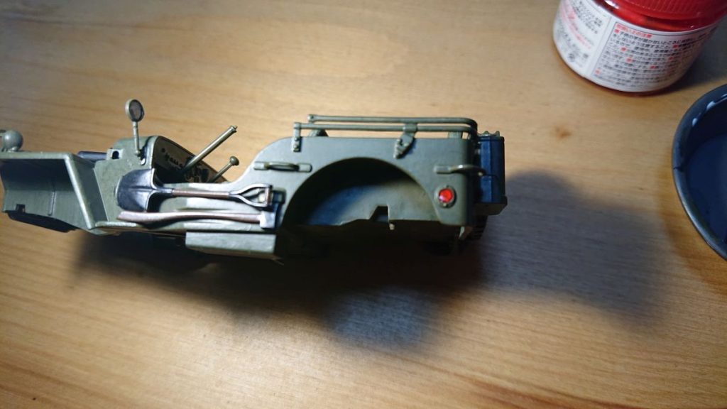 塗装するプラモデルは、前回製作したタミヤの1/35ジープです。筆塗りをするには丁度いいサイズと言えます。